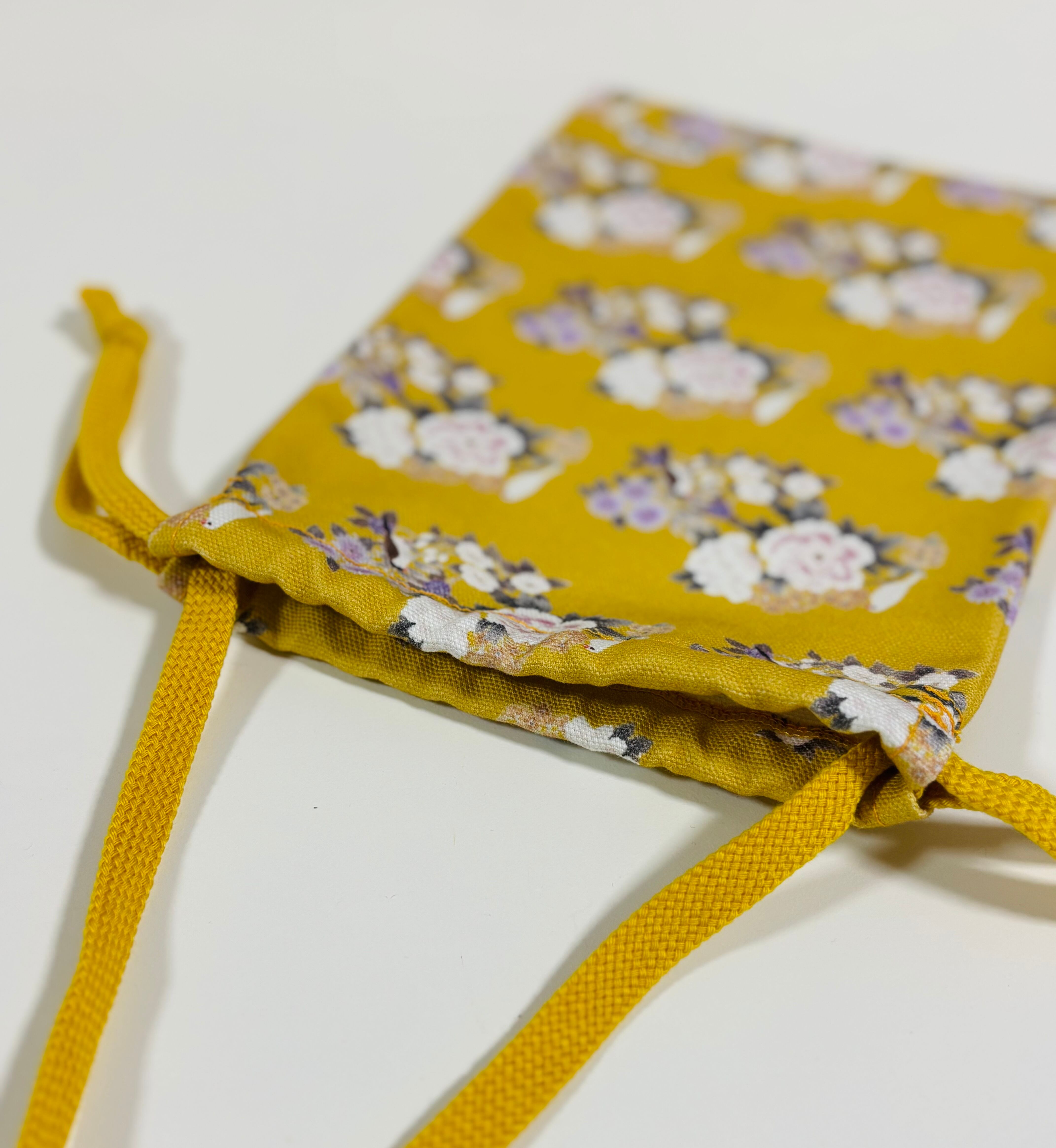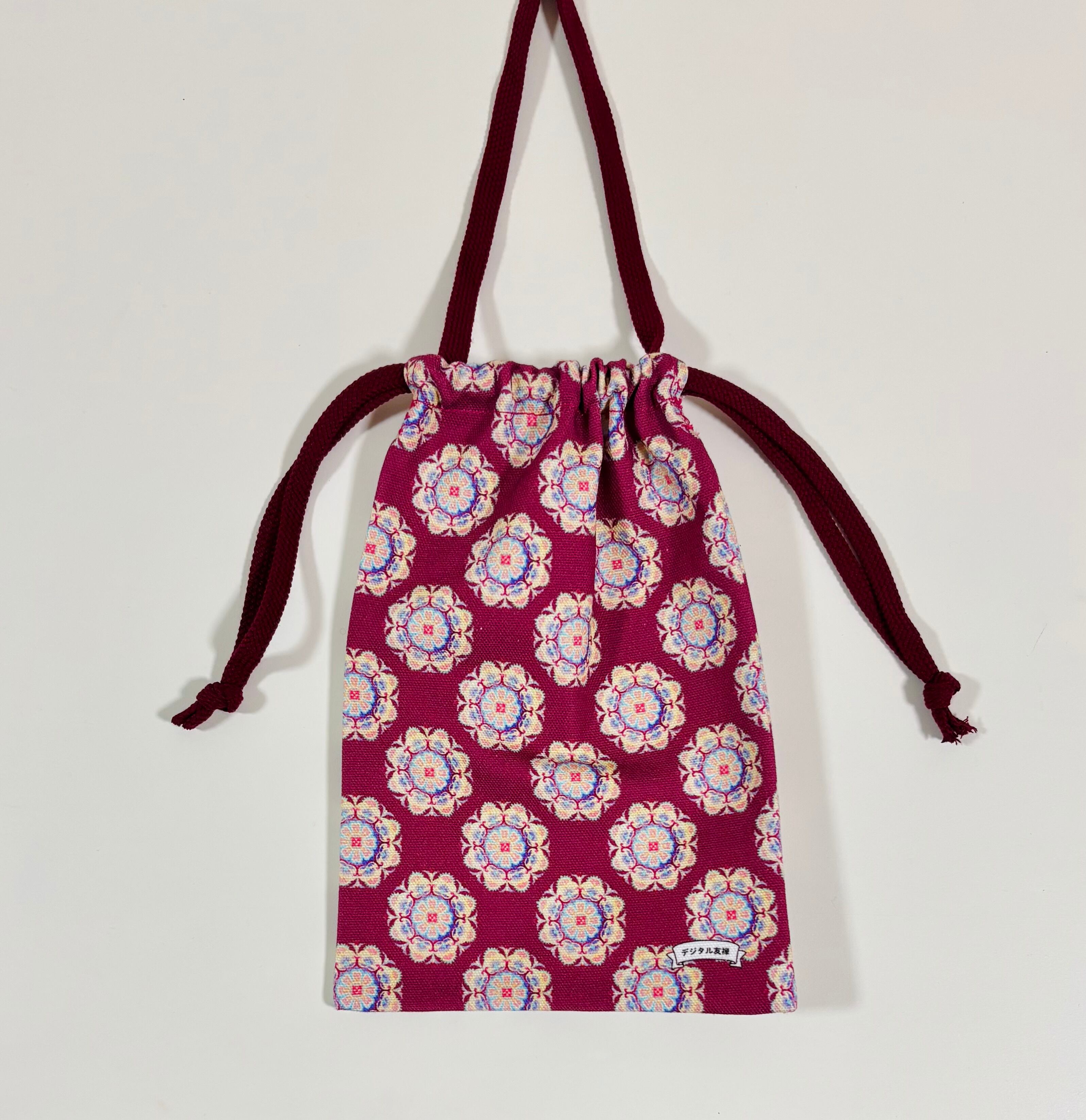 その「デジタル友禅」の染布を用いて、日本の縫製職人さんが1つ1つ仕上げた巾着です。