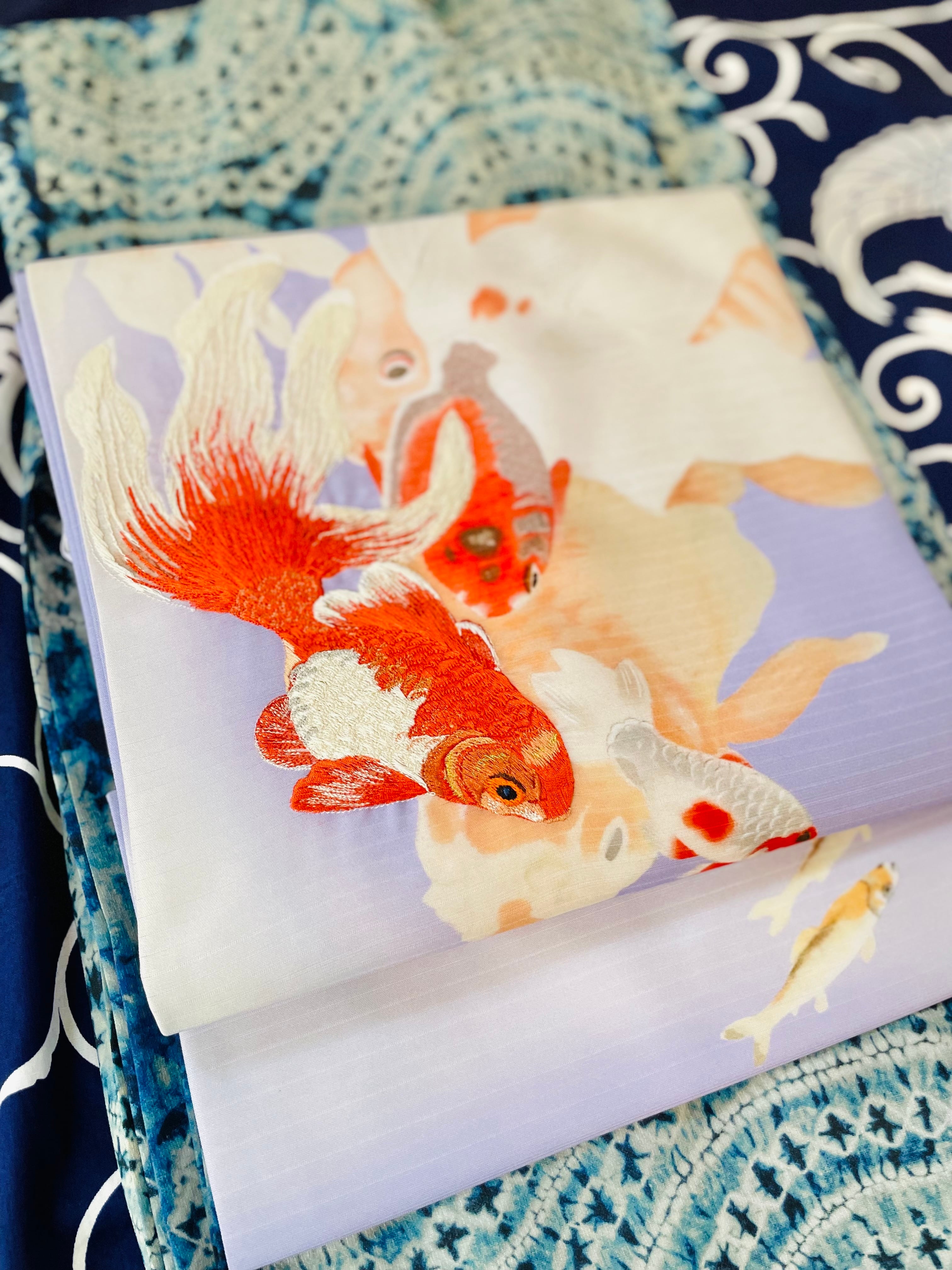 【受注】刺繍なし夏帯「金魚」若菜さん復刻着物【限定販売】