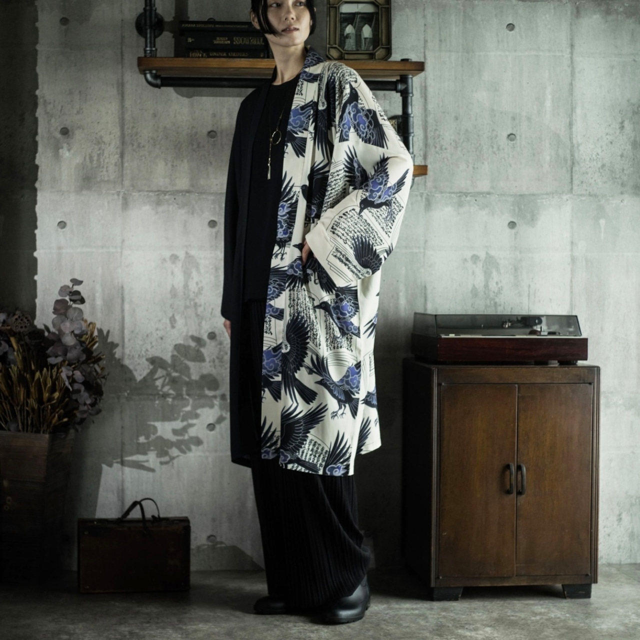 コートやカーディガンのように、サッと羽織るだけで完成する、和洋を越えた新しい一着です。