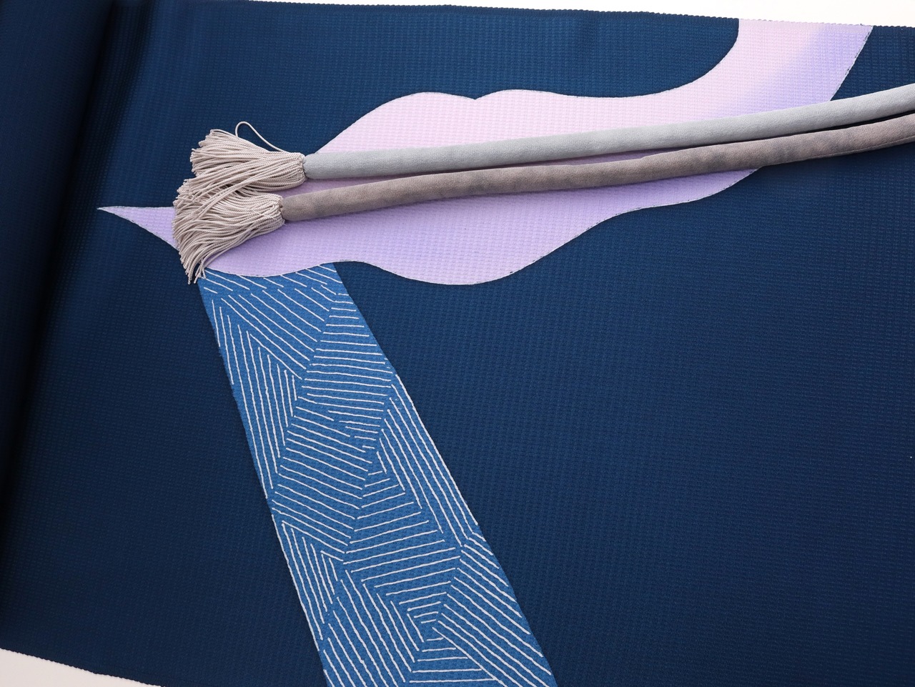 落ち着いた紺の地色が、主張しすぎず、着姿に自然になじみます。