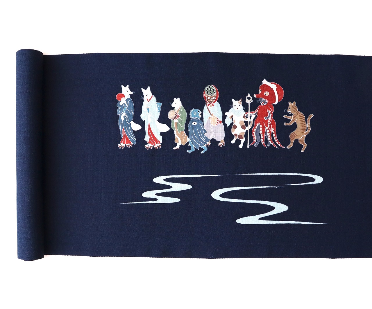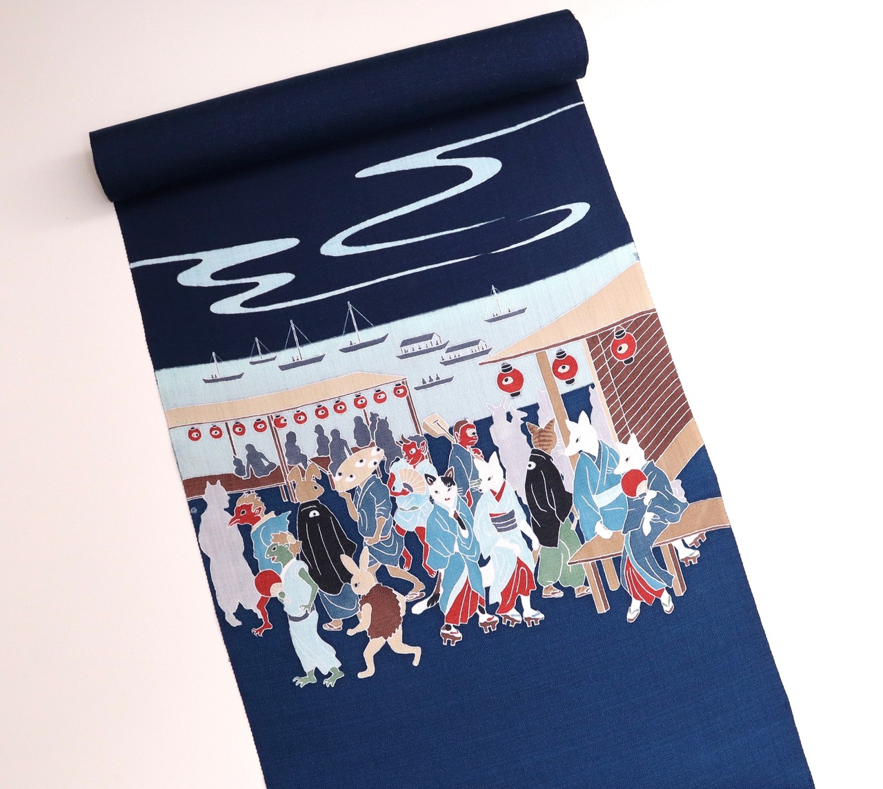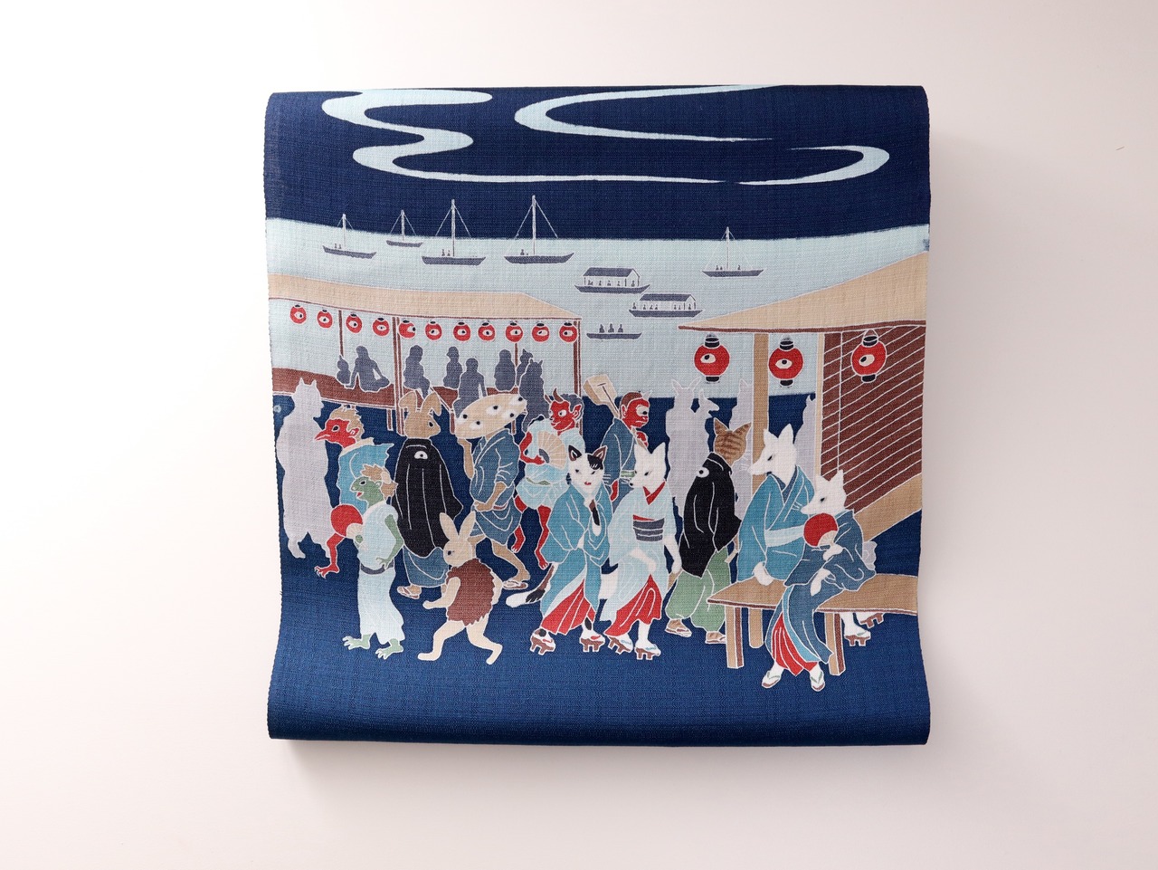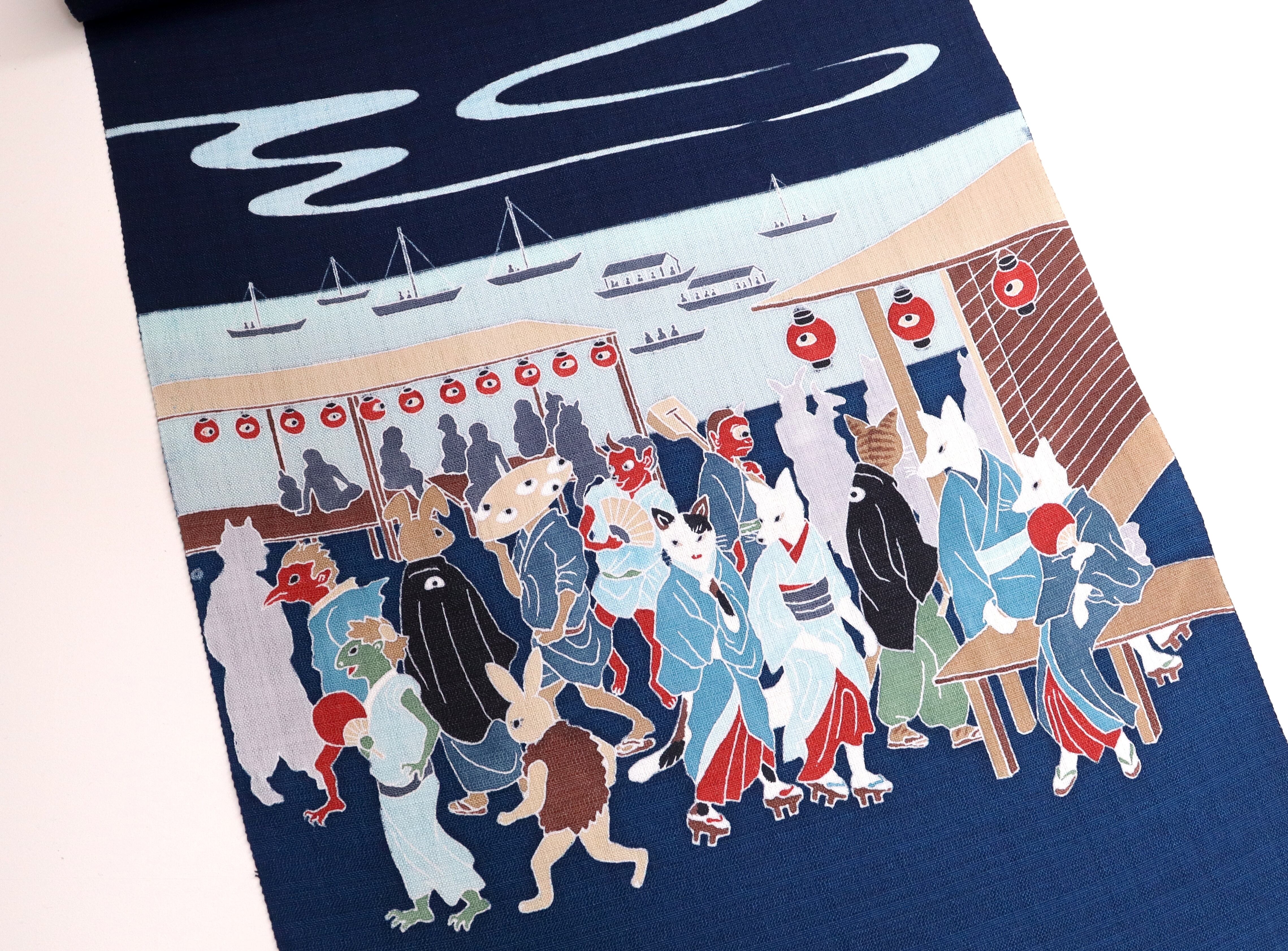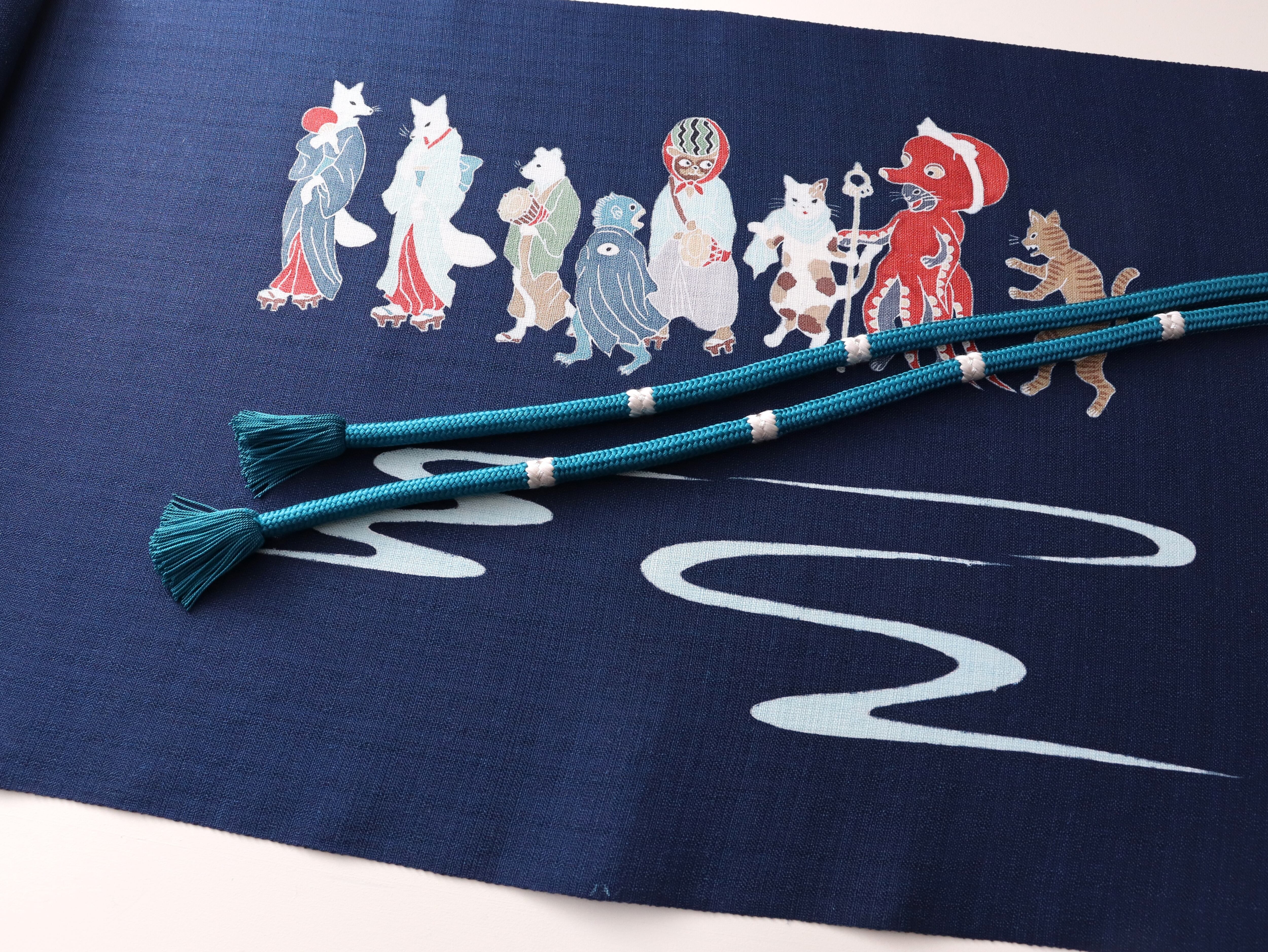 手描友禅 夏名古屋帯「高輪廿六夜待ち」紺青