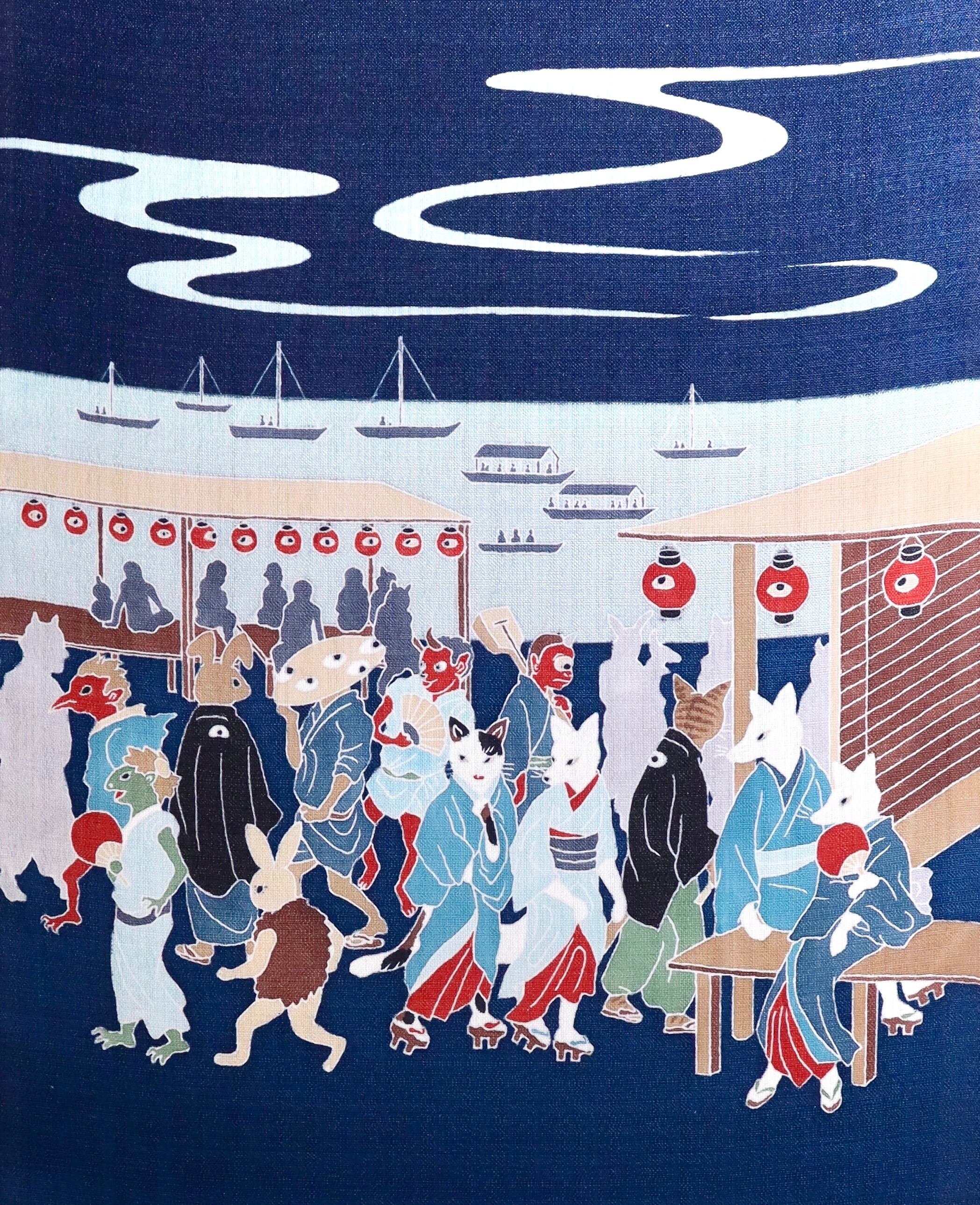 歌川広重の錦絵「東都名所高輪廿六夜待遊興之図」をモチーフに、