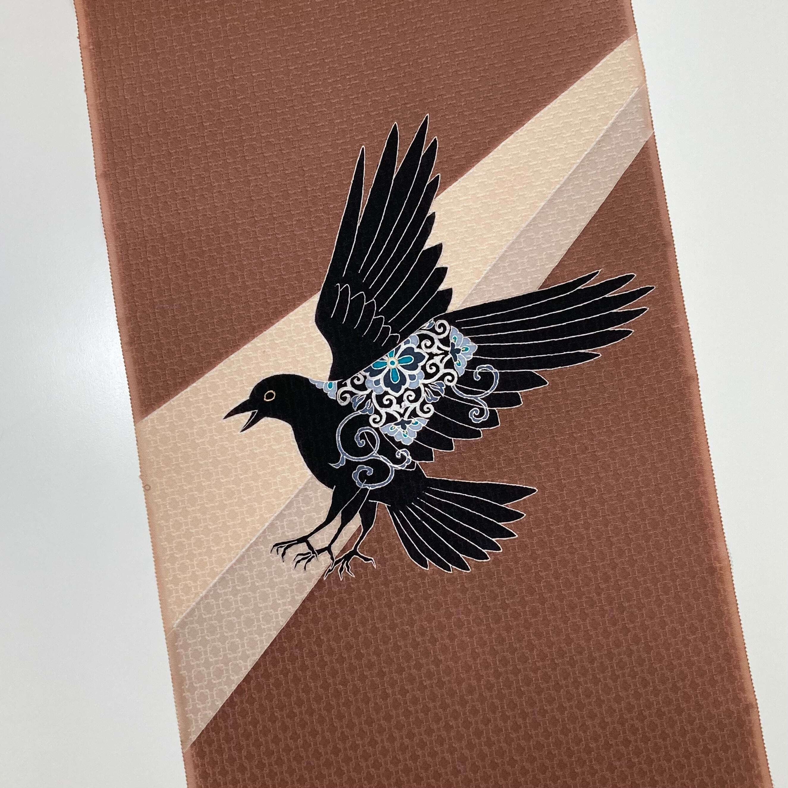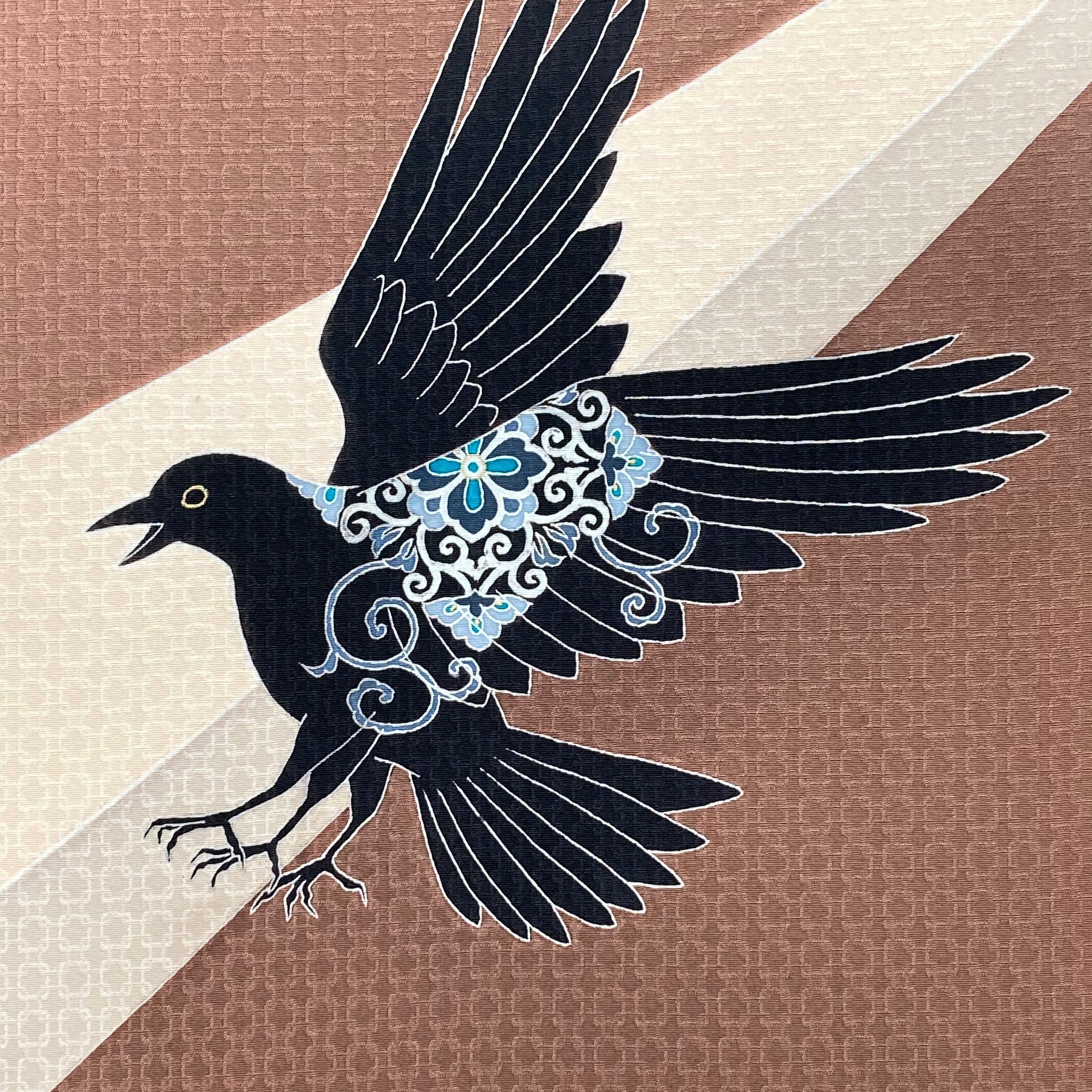 手描友禅 名古屋帯「八咫烏」茶