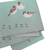 おしゃべりする3羽の雀たち。かわいい足跡がアクセントです。