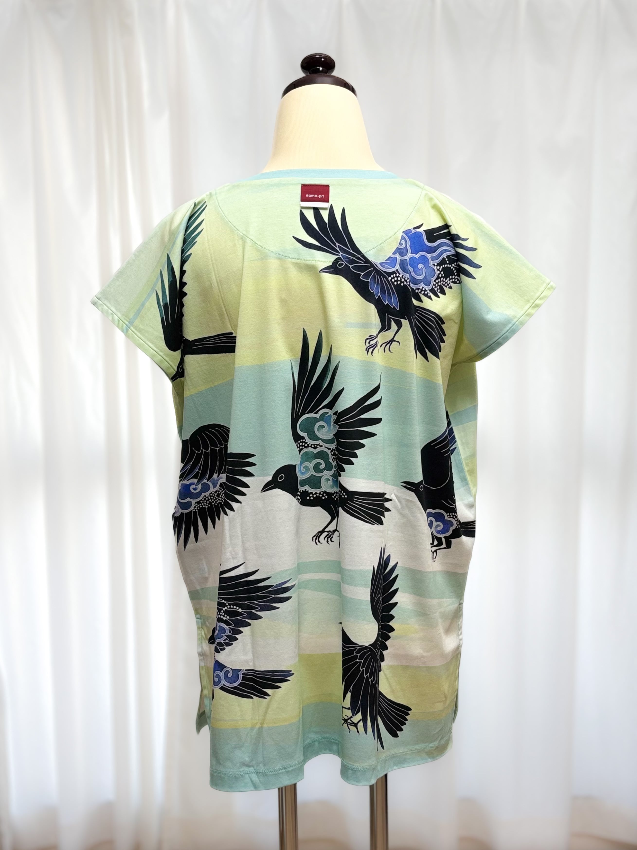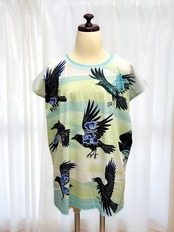 四角く縫われたデザインですが、着用するとフレンチスリーブのカットソーになります。