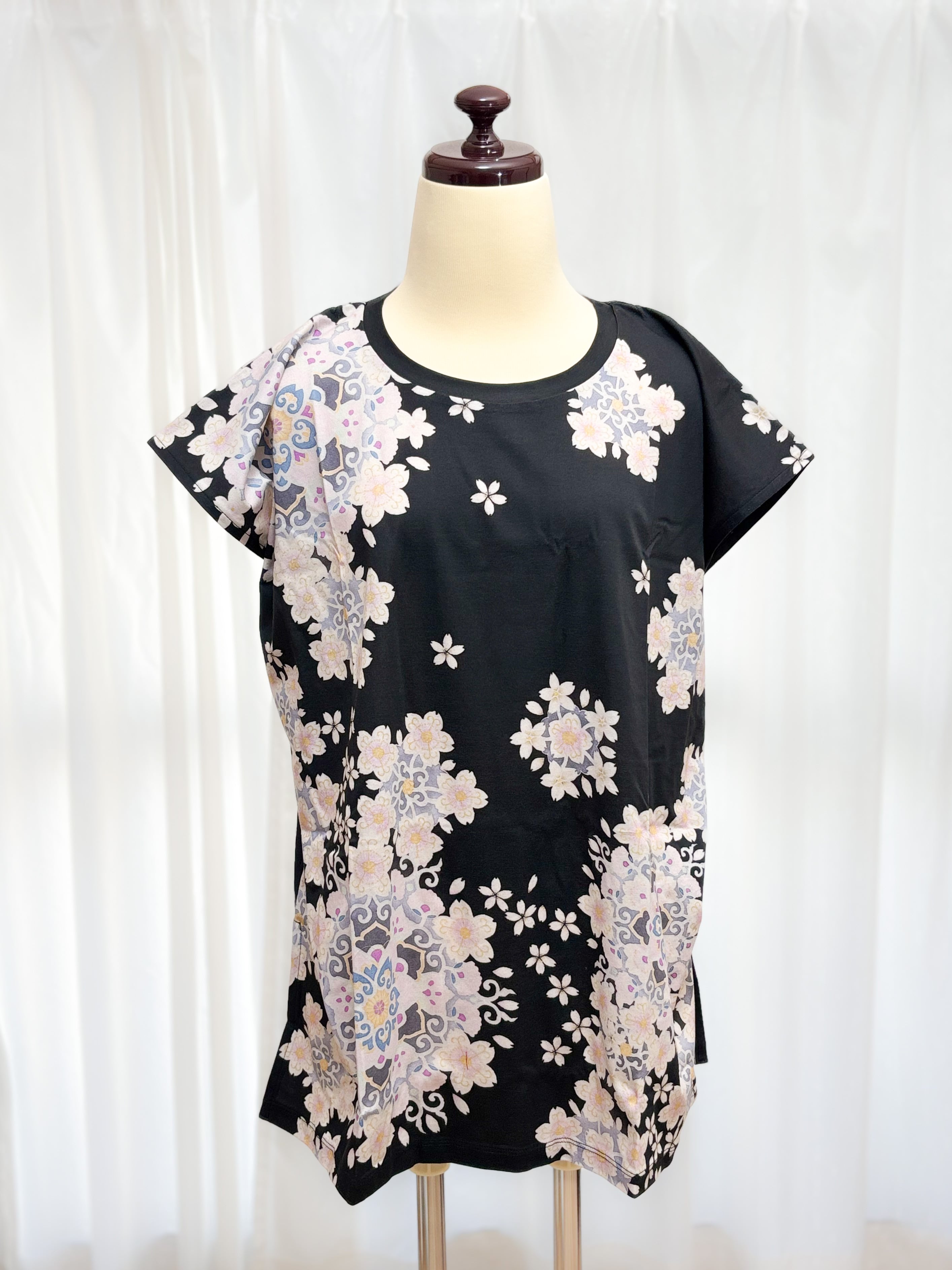 四角く縫われたデザインですが、着用するとフレンチスリーブのカットソーになります。