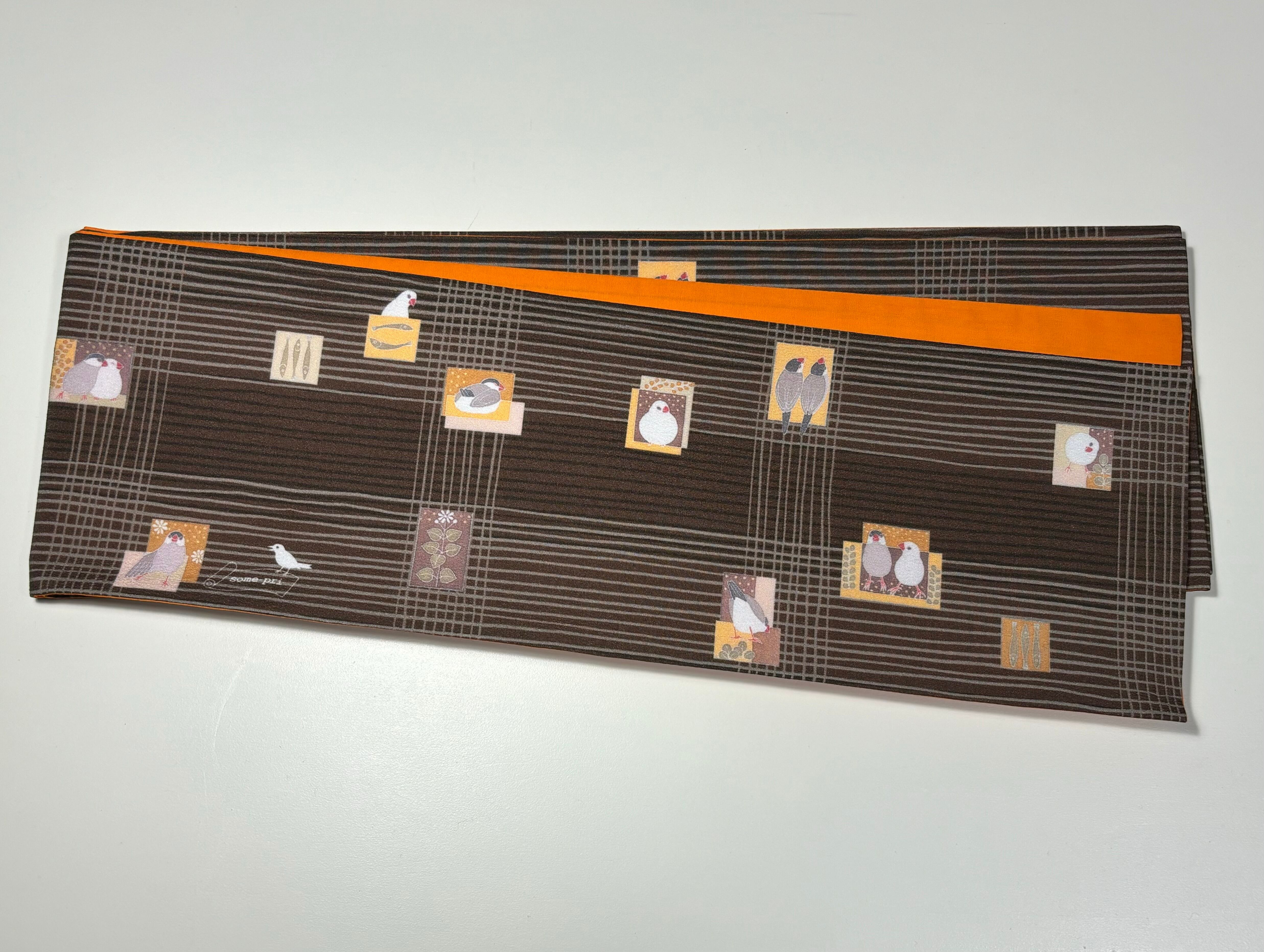 チョコレート色の地色に、裏地はビビッドなオレンジにしました。